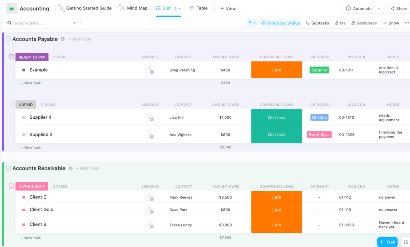 We were impressed by Clickup and the volume of its information in its “List” view. (Source: Clickup)